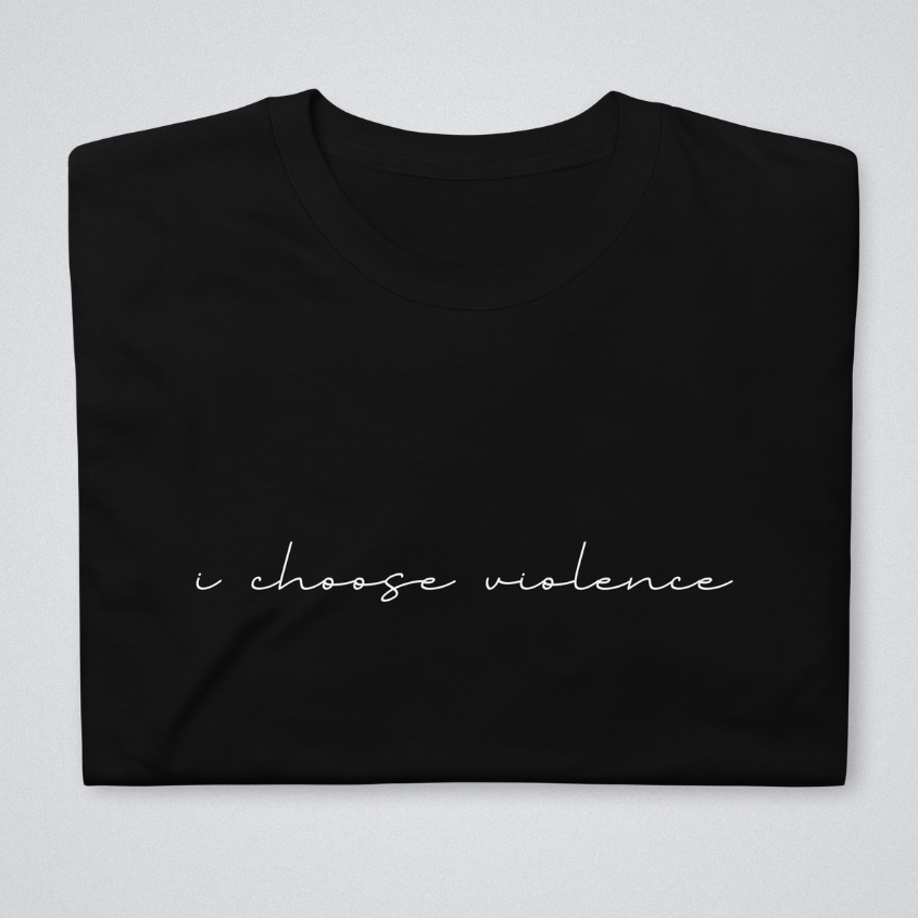 Our I Choose Violence tee is your new favorite kind of warning — pretty at a glance, unapologetic up close. Wear it when you're not here to play nice. (So, most days.)