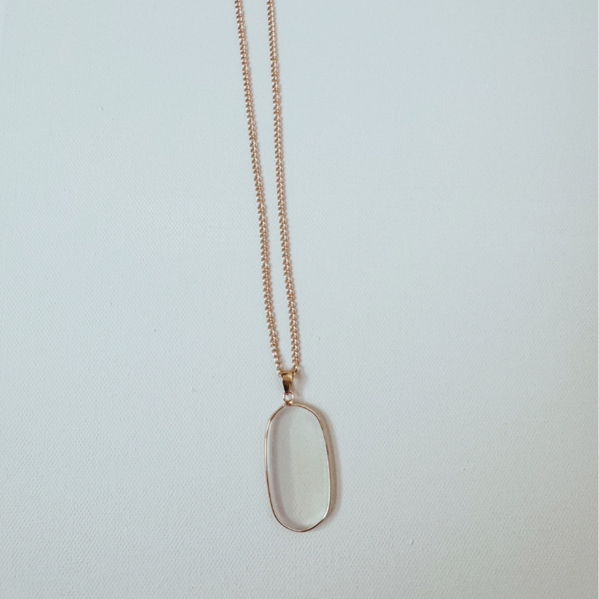 Moonstone Glass Pendant Necklace, Gold 20 inches
