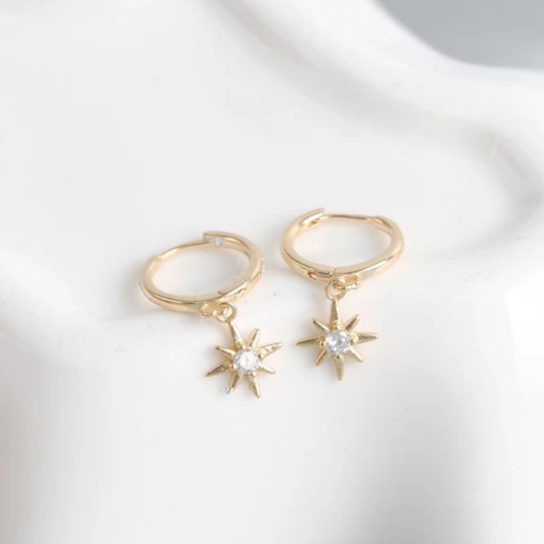 These dainty star drop hoop earrings are the perfect addition to your earring lineup — blending effortlessly into your stack while adding a little extra sparkle. The seamless clasp ensures all-day wear without the ouch (because we don’t do uncomfortable).