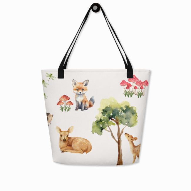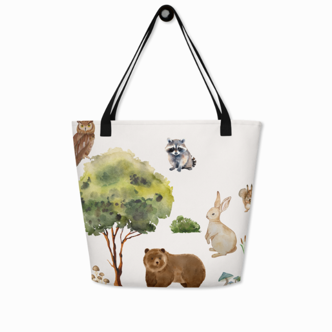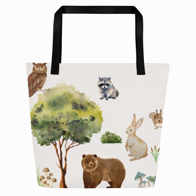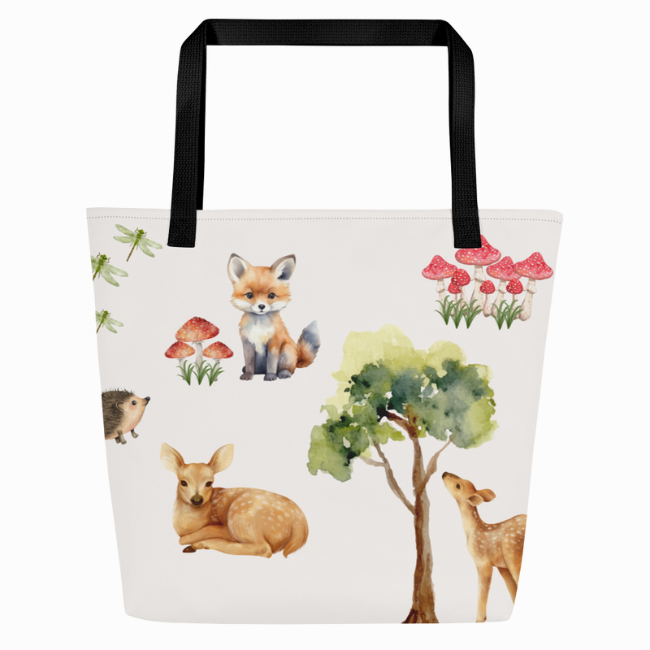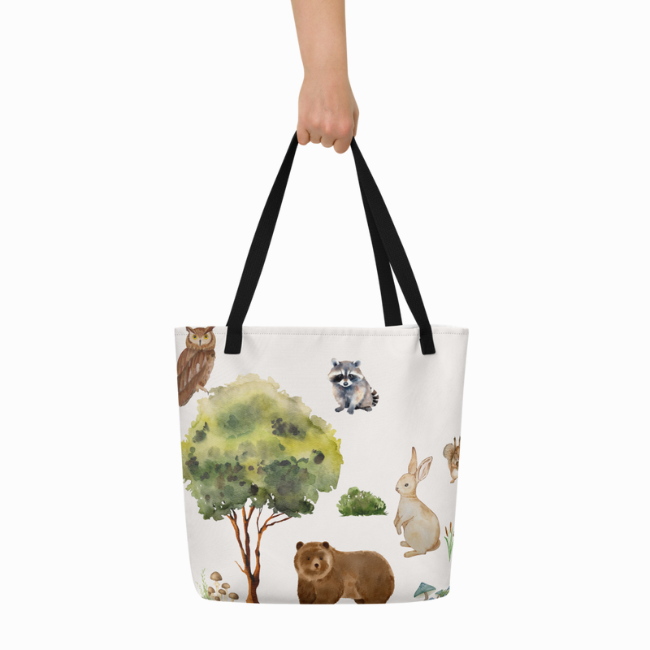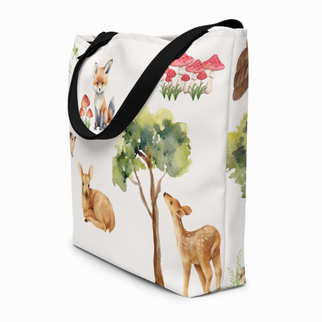 Are you looking for a cute tote bag to hold all your baby's essentials? We have designed the cutest bag featuring woodland baby animals with forest elements surrounding them. With its beautiful design, this tote bag is not only functional but adorable.